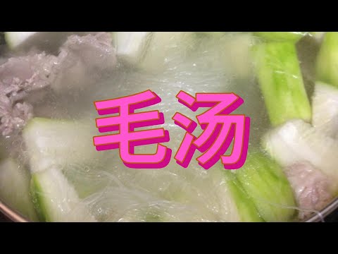 毛湯在日常烹調中被廣泛使用,它的特點是顏色濁白,是一種常見而簡單的湯品。製作毛湯的方法是先將雞肉、鴨肉、豬肉、豬蹄膀、豬骨等材料用清水洗淨,然後放入大型湯鍋中煮沸。在煮沸的過程中,會產生一些浮沫和血水,需要將其去除。然後蓋上鍋蓋,繼續加熱煮熟(煮熟程度根據材料的用途而定)。接著取出材料,繼續煮,待湯的顏色變得白濁時,表示湯已經完成。